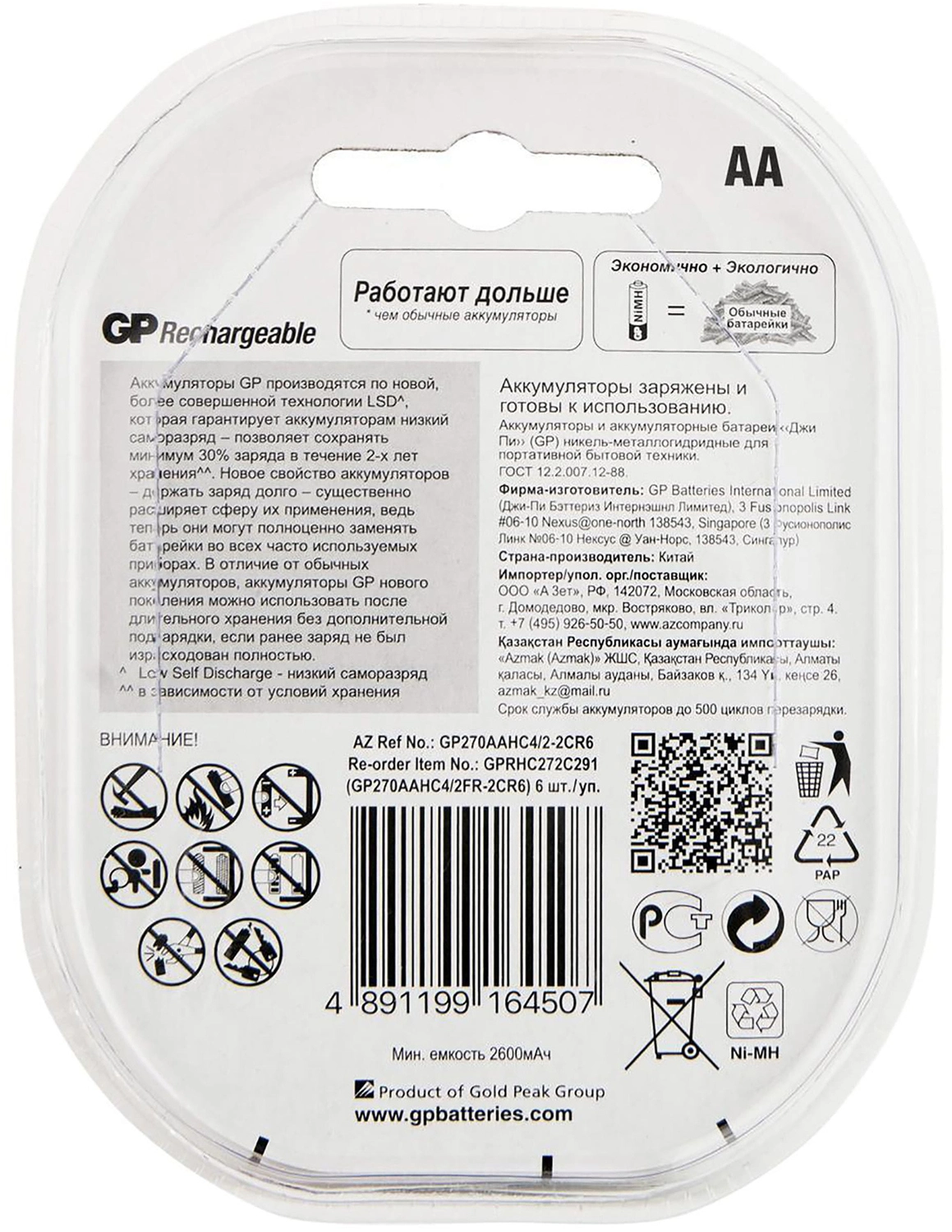 Аккумулятор GP 2700AAHC4/ 2 AA NiMH 2700mAh (6шт) блистер 2700AAHC4/ 2-2CR6 36/ 360