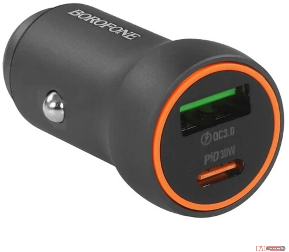 Аксессуар BOROFONE BZ32A/ Авто ЗУ/ PD + QC 3.0/ 2 USB: Type-C + Type-A/ Выход: 30W + 18W/ графит [B-18579]