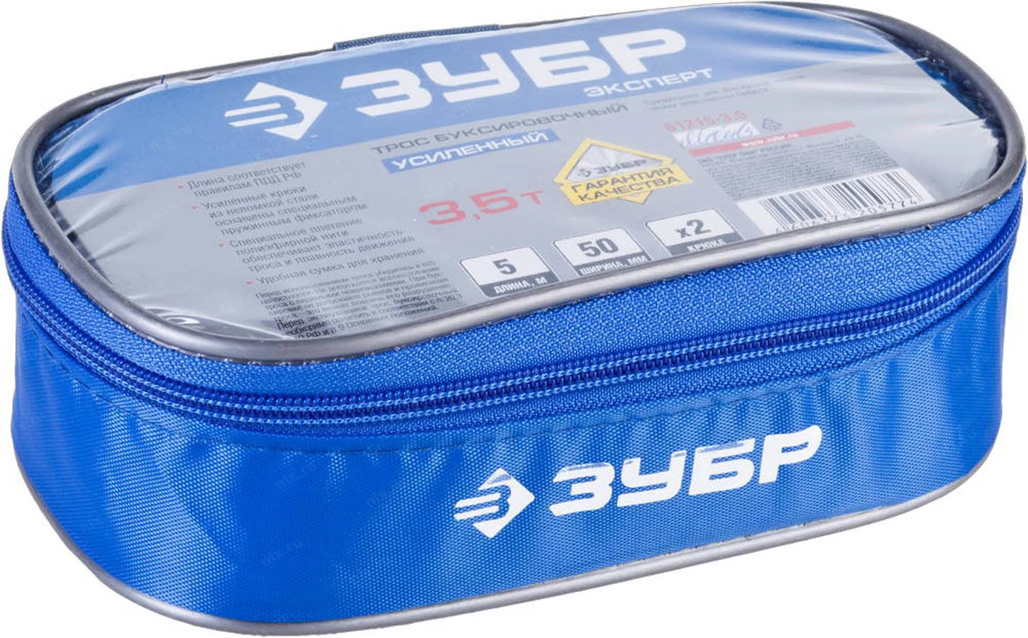 61215-3.5> Трос буксировочный усиленный (5м, 3.5т, лента, крюк-крюк)