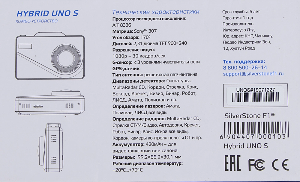 Видеорегистратор с радар-детектором Silverstone F1 HYBRID UNO S GPS черный UNO-S