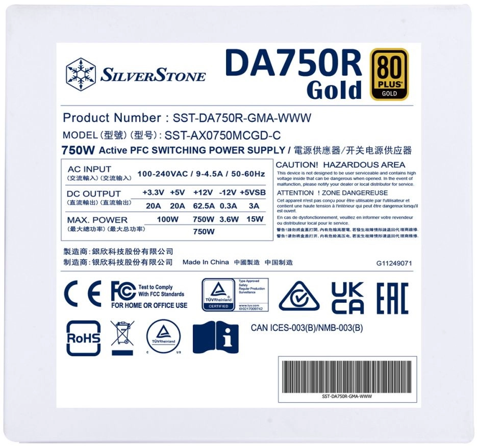 Блок питания Silverstone ATX 750W Decathlon DA750R 80+ gold (20+4pin) APFC 120mm fan 8xSATA Cab Manag RTL G54ADA075R4M220
