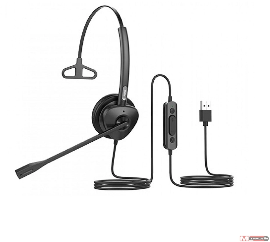 Гарнитура для IP телефонов Fanvil HT301-U Моно гарнитура USB, кож.зам., HD Audio, складной микрофон, 1,8м., 73г