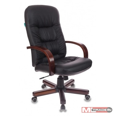 Кресло руководителя Бюрократ T-9908 черный кожа крестов. металл/дерево T-9908/WALNUT