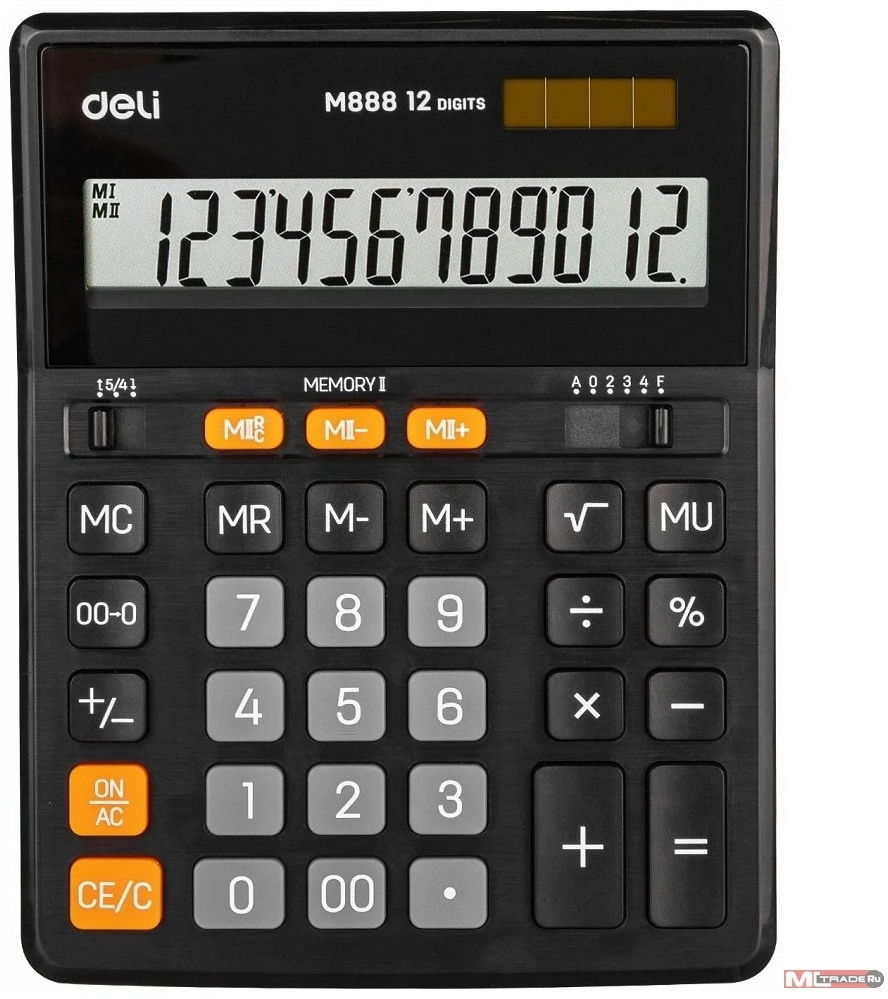 Калькулятор настольный Deli EM888 черный 12-разр. EM888 BK (продается кратно 20 шт.)