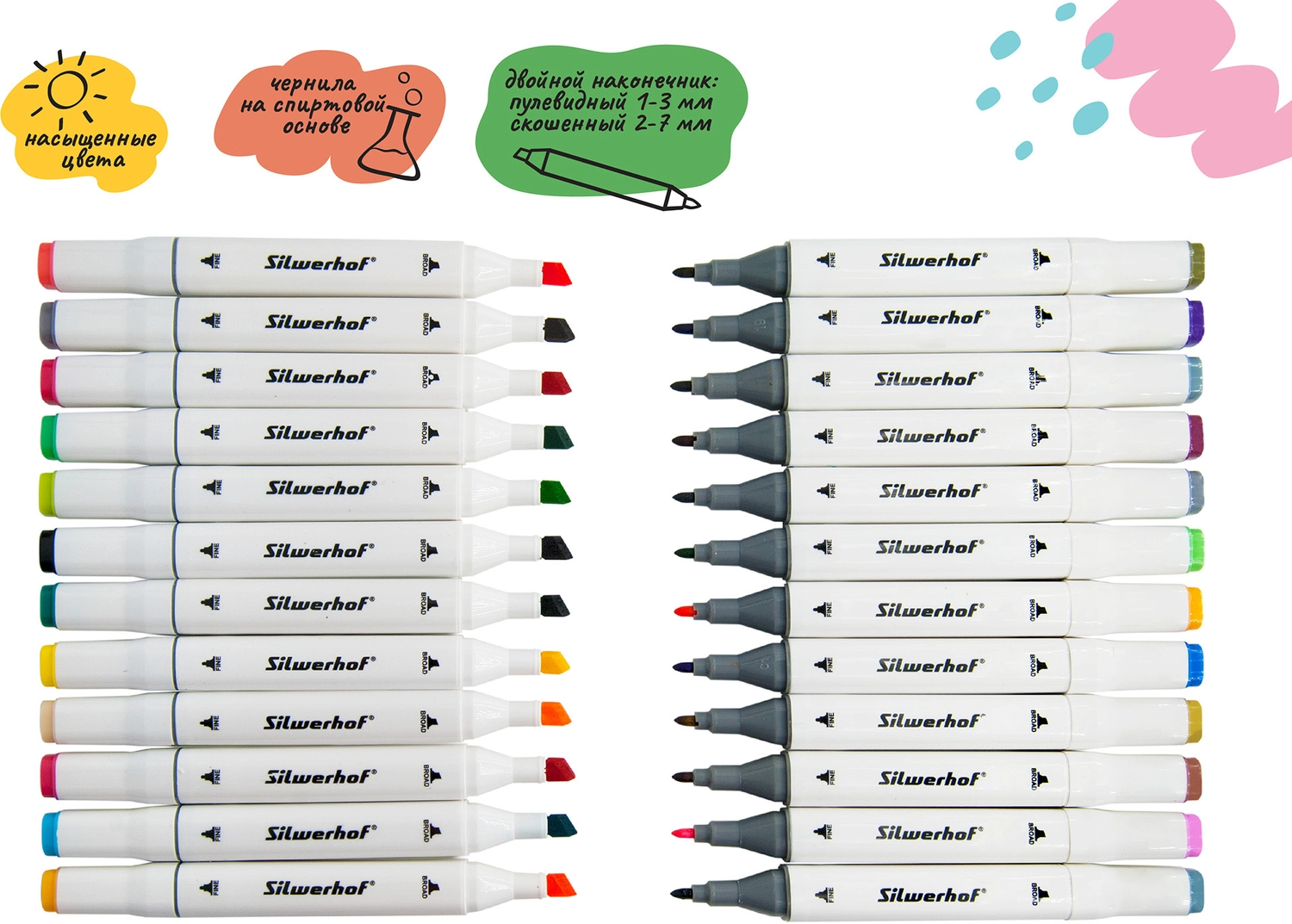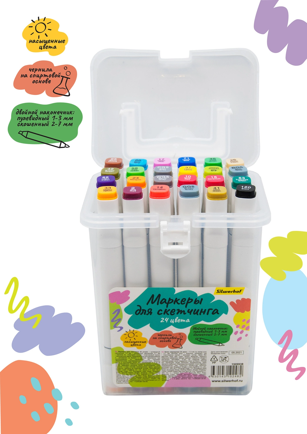Набор маркеров для скетчинга Silwerhof Idea двойной пиш. наконечник 1-7мм 120цв. (120шт.) пластиковая коробка