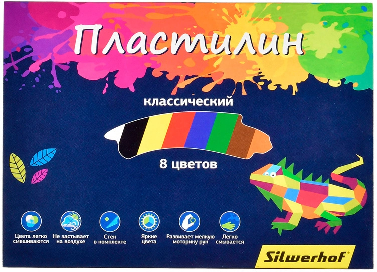 Пластилин Silwerhof Цветландия 8цв. 160гр. стек картон.кор. (продается кратно 24 шт.)