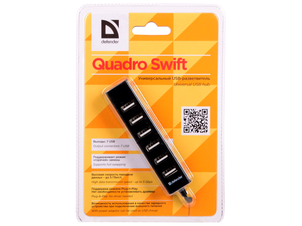 Концентратор USB2 7PORT QUADRO SWIFT 83203 DEFENDER