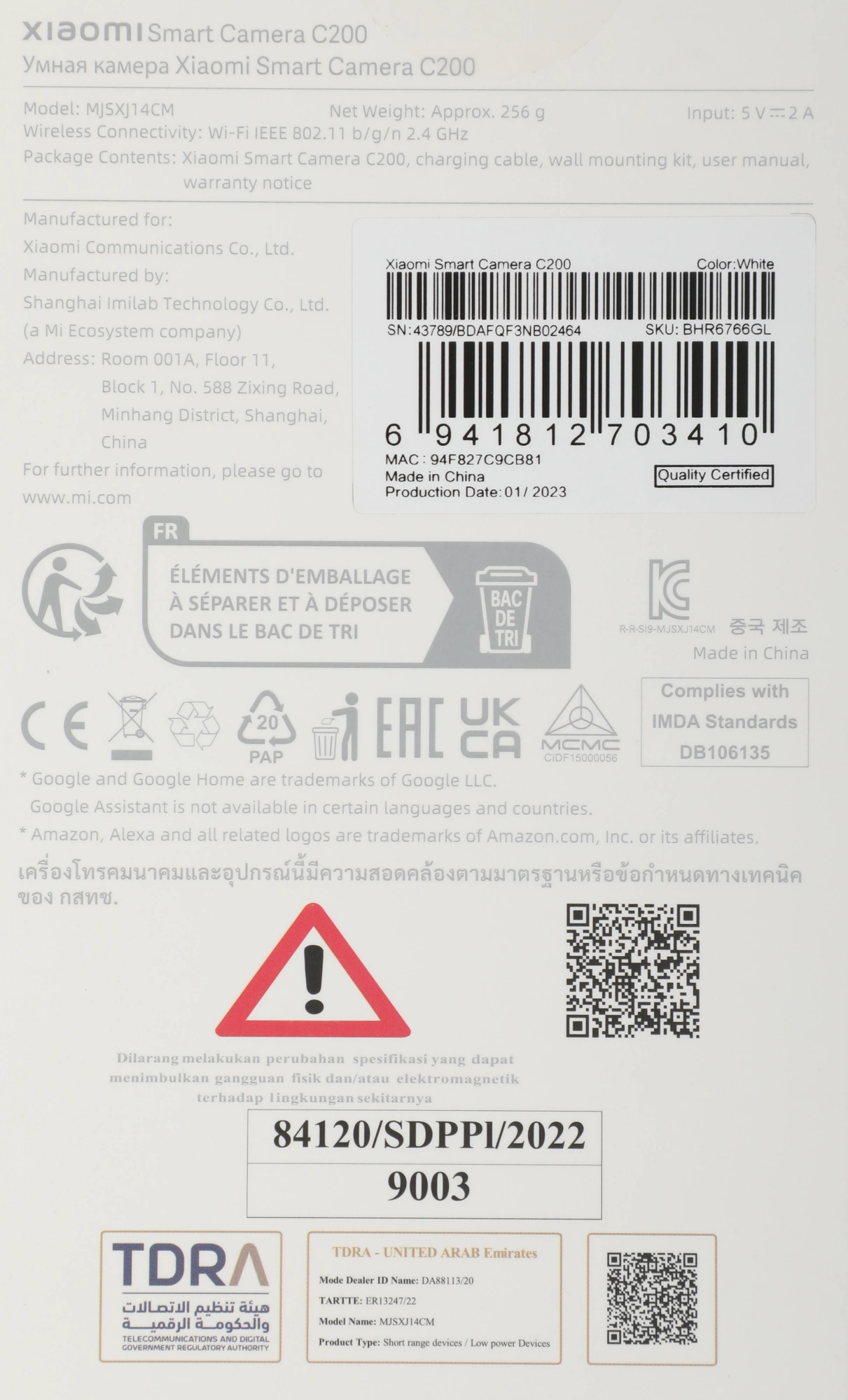 Предупреждение: Адаптер питания не входит в комплект поставки Серия продукции: Smart Предназначение: Внутренняя камера Количество камер в комплекте: 1 Максимальное разрешение: 1920x1080 Тип подсветки: Инфракрасная Баланс белого: Да Объектив: Фокусное расстояние, мм: 2.1 Моторизованный объектив: Да Доступ: Через собственное приложение Язык интерфейса: Русский Мобильные приложения: Android, iOS Просмотр изображения на мобильном устройстве: Да Сохранение видео: на карту памяти MicroSD Поддержка удаленного управления: Да Тип блока питания в комплекте: Сетевой адаптер питания Рабочая температура: От (темп.): -10 До (темп.): 40 Особенности питания: 5VDC/1A (в комплект входит кабель питания USB-A 2м, адаптер питания приобретается отдельно) Габариты камеры: Ширина: 75 Высота: 109 Глубина: 75 Особенности: Беспроводное подключение WiFi 802.11b/g/n. Встроенный детектор движения. Поворот на 360 градусов. Экосистема Mi Home. Пластиковый корпус Комплект поставки: Камера, документация, монтажный комплект, кабель питания