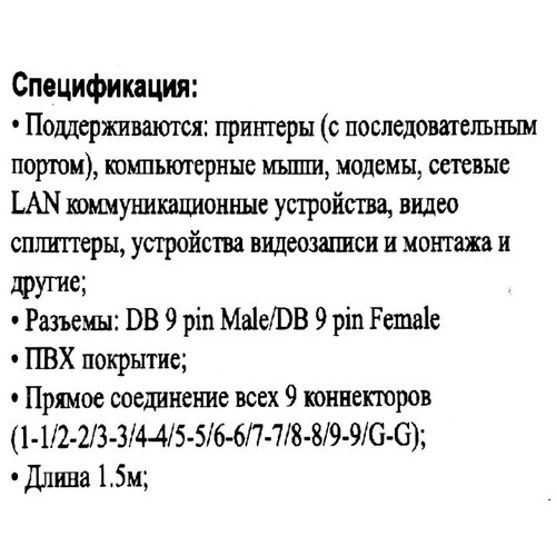 KS-366-15> Кабель COM9M -> COM9F 1.5м