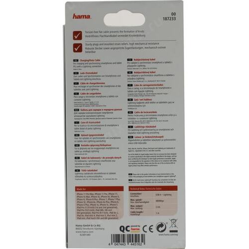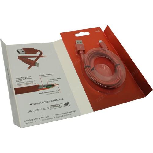Кабель Hama 00187233 USB (m)-Lightning (m) 1м красный плоский