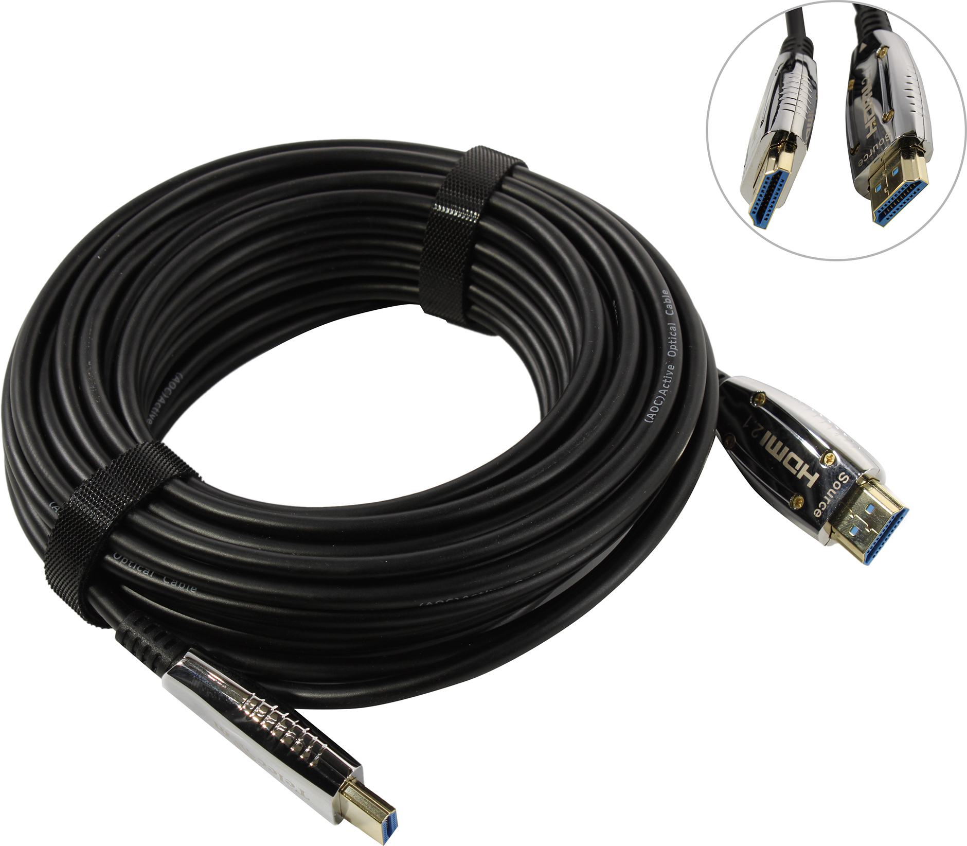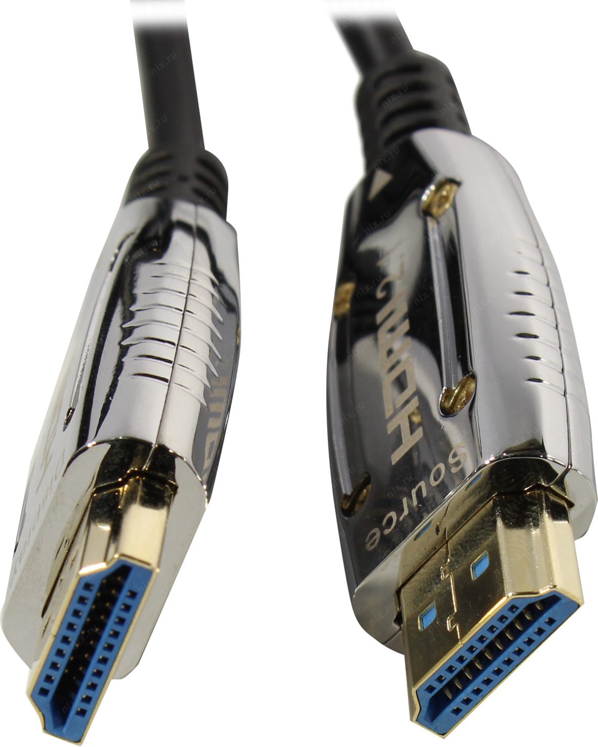 Оптический кабель со стандратными HDMI разъемами; применяется для подключения HDMI телевизора/монитора/проектора итп к разъему HDMI видеокарты/плеера. Обеспечивает передачу данных на большие расстояния с минимальными потерями.;;Активный оптический кабель HDMI 19M/M,ver. 2.1, 8K@60 Hz предназначен для передачи аудио и видео сигнала Full HD, 4K и 8K с максимальной пропускной способностью кабеля до 48 Гбит/сек. Дополнительного питания не требуется, оптико-электрические преобразователи встроены в разъемы кабеля.