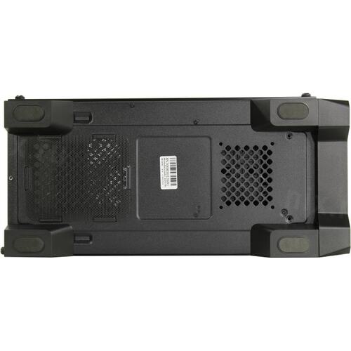 Снизу, с забором воздуха через фильтр снаружи корпуса, что обеспечивает лучшее охлаждение в системе и малошумность.