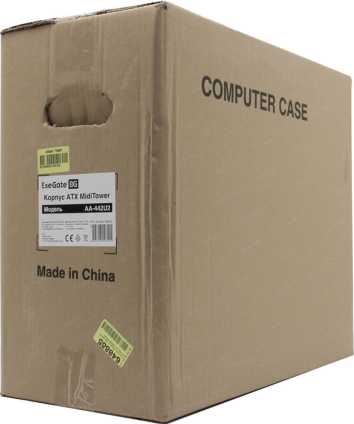 Корпуса Exegate EX290174RUS Корпус Miditower ExeGate AA-442U2 (ATX, без БП, 1*USB+2*USB3.0, аудио, черный)