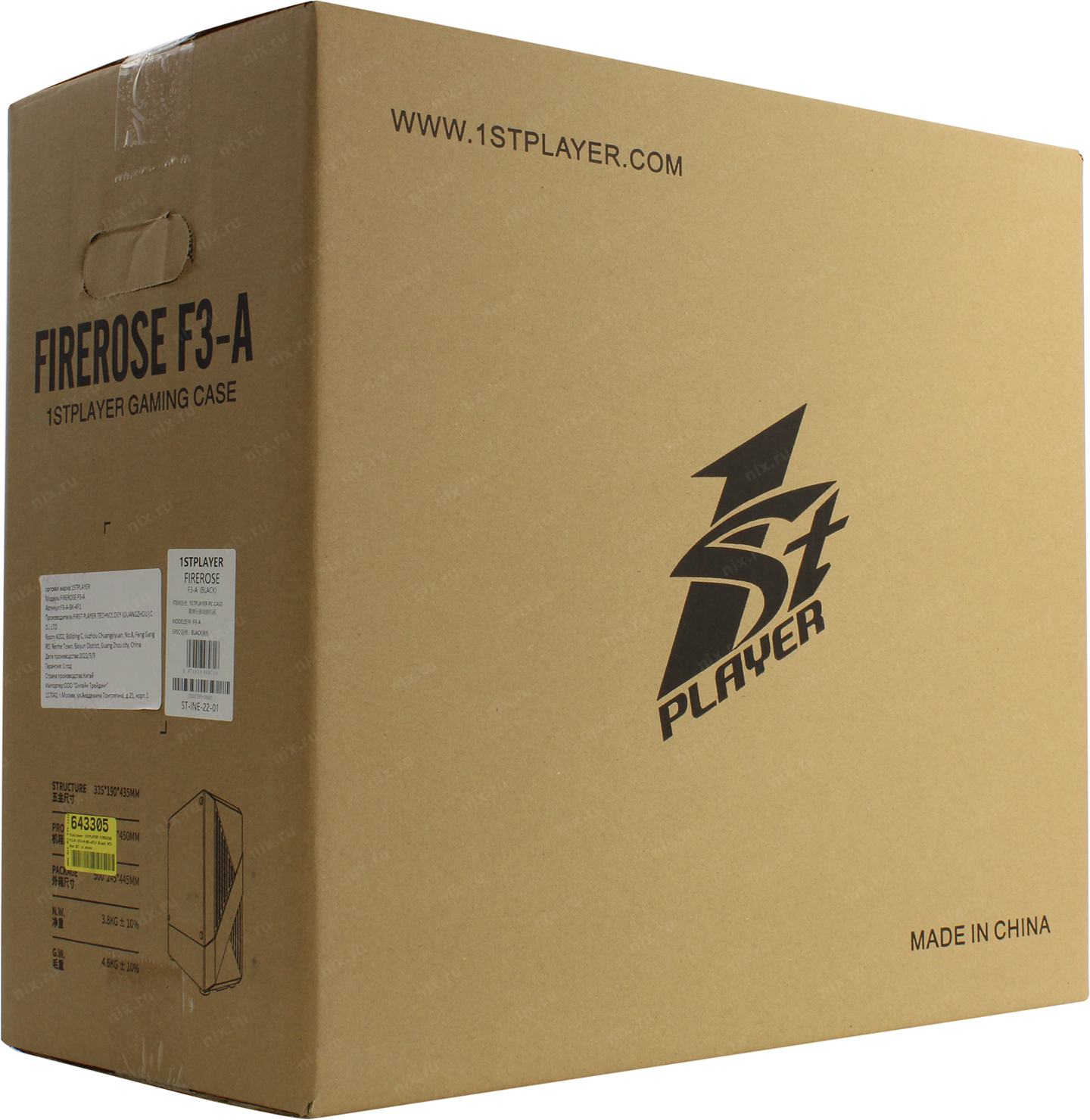Корпус 1STPLAYER Корпус FIREROSE F3-A Black / ATX, TG / 4x120mm LED fans inc. / F3-A-BK-4F1