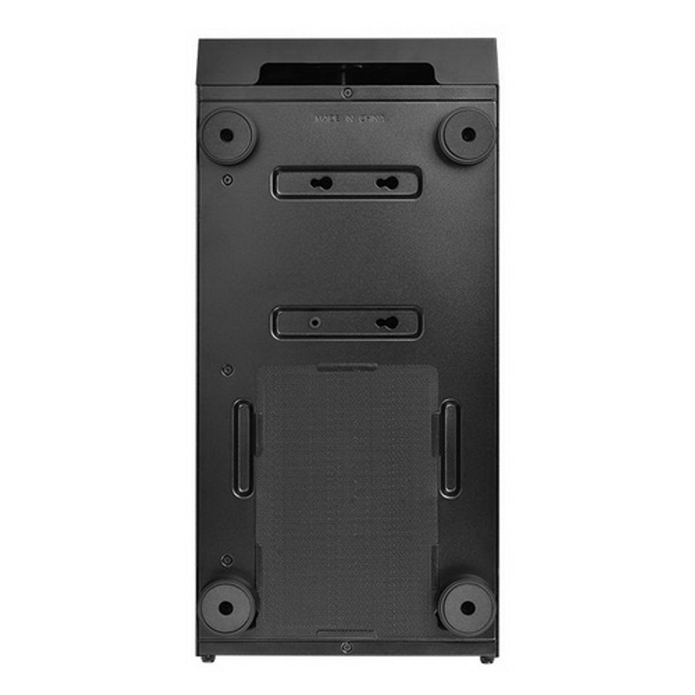 Снизу, с забором воздуха через фильтр снаружи корпуса, что обеспечивает лучшее охлаждение в системе и малошумность.