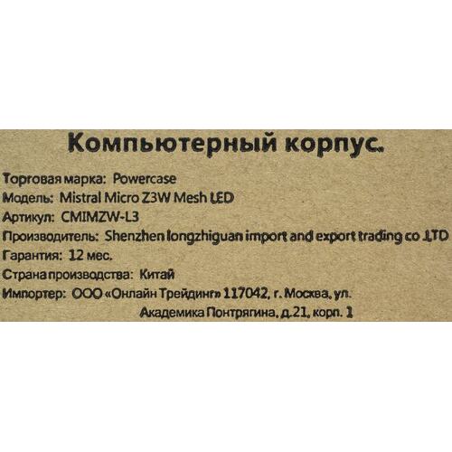 Корпус Powercase CMIMZW-L3 Корпус Mistral Micro Z3W Mesh LED, Tempered Glass, 2x 140mm + 1х 120mm 5-color fan, белый, mATX (CMIMZW-L3)