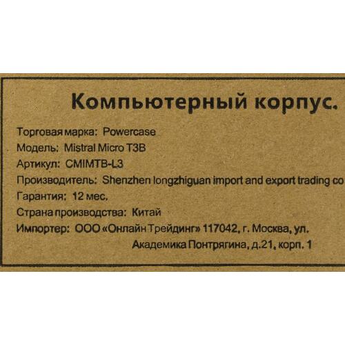 Корпус Powercase CMIMTB-L3 Корпус Mistral Micro T3B, Tempered Glass, Mesh, 2x 140mm + 1х 120mm 5-color fan, чёрный, mATX (CMIMTB-L3)