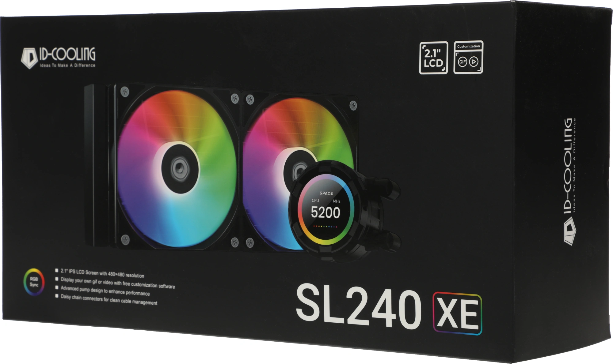Система водяного охлаждения ID-Cooling SL240 ARGB Soc-AM5/AM4/1200/1700/1851 черный 4-pin 14-30dB Al+Cu LCD 300W Ret