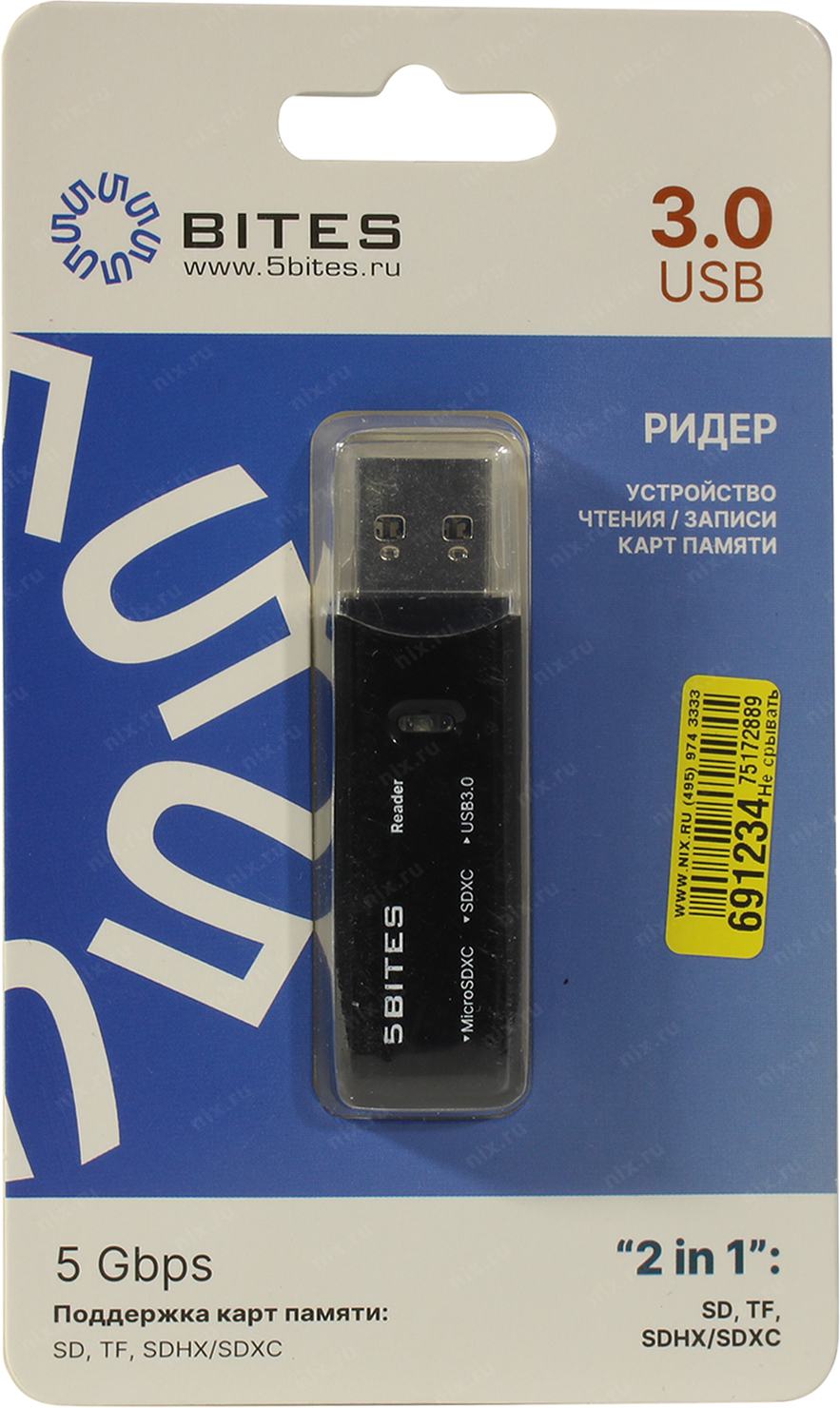 USВ-концентраторы 5bites Устройство ч/з карт памяти RE3-200BK USB3.0 Card reader / SD / TF / USB PLUG / BLACK