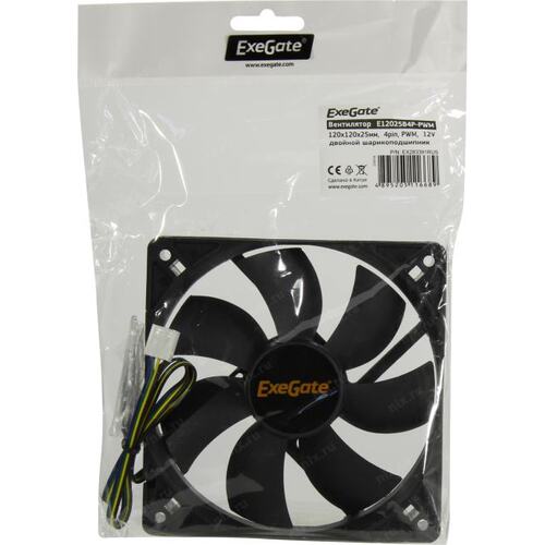 Вентиляторы Exegate EX283391RUS Вентилятор ExeGate E12025B4P-PWM, 120x120x25 мм, двойной шарикоподшипник, 4pin, PWM, 22dBA
