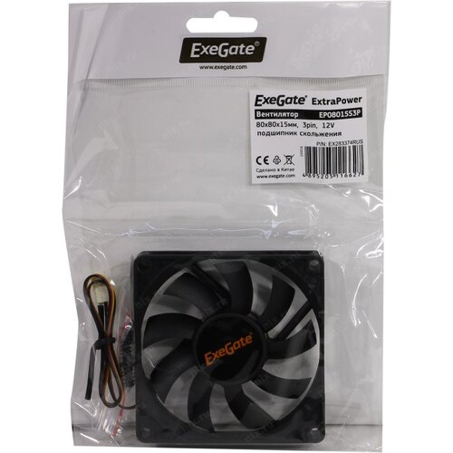 Вентиляторы Exegate EX283374RUS Вентилятор ExeGate ExtraPower EP08015S3P, 80x80x15 мм, подшипник скольжения, 3pin, 2500RPM, 26dBA