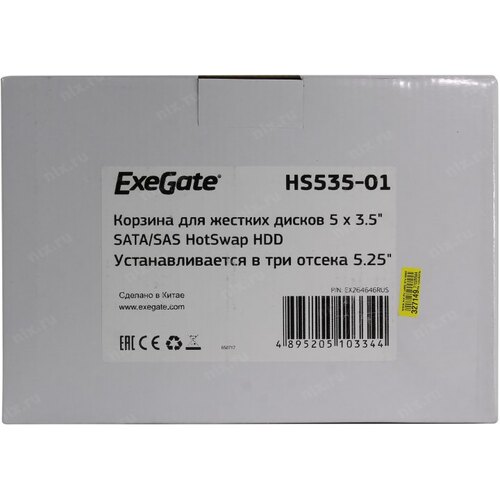 Опции к серверам Exegate EX264646RUS Корзина для HDD Exegate HS535-01 (универсальная, на 5*3,5" SATA/SAS HDD, занимает 3*5,25" отсека)
