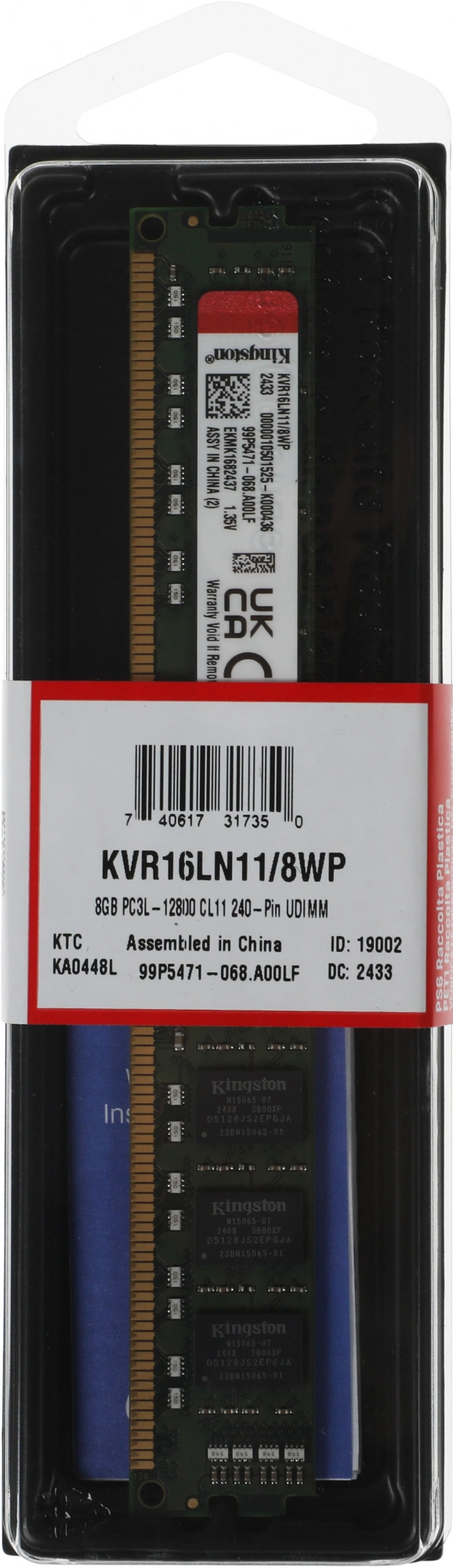 Модуль памяти Kingston 8GB DDR3L 1600 DIMM KVR16LN11/8WP Non-ECC, Unbuffered, CL11, 1.35V, 2R, 4Gbit, RTL (25) KVR16LN11/8WP (317350)