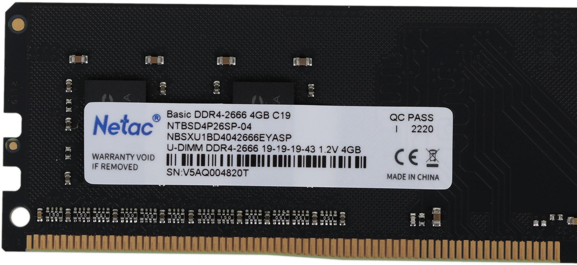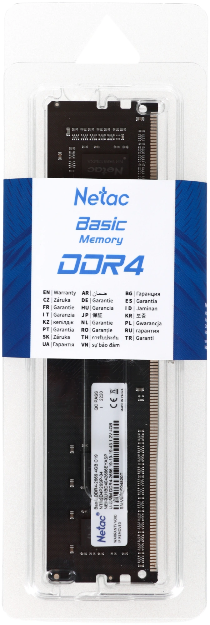 Оперативная память Netac Basic DIMM 4GB DDR4-2666 (PC4-21300) C19 19-19-19-43 1.2V Memory module <NTBSD4P26SP-04>