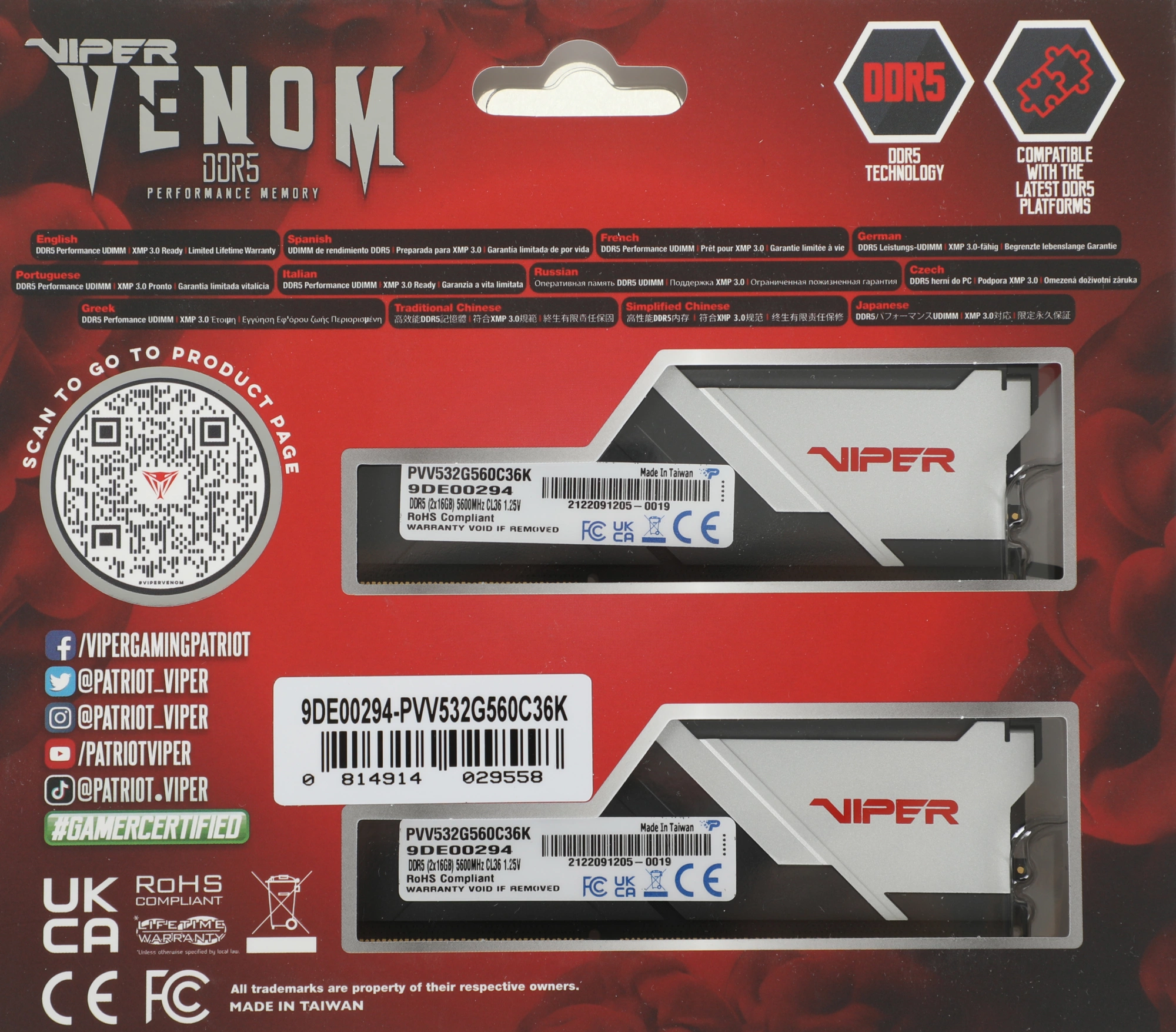 Модуль памяти DIMM DDR5-5600 32GB (16GBx2) PVV532G560C36K PATRIOT