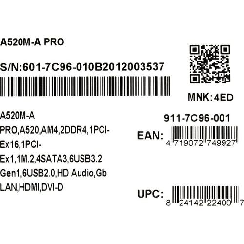 Материнская плата MicroStar MSI A520M-A PRO (Soc-AM4 AMD A520 2xDDR4 mATX AC`97 8ch(7.1) GbLAN RAID+DVI+HDMI) [A520M-APRO]