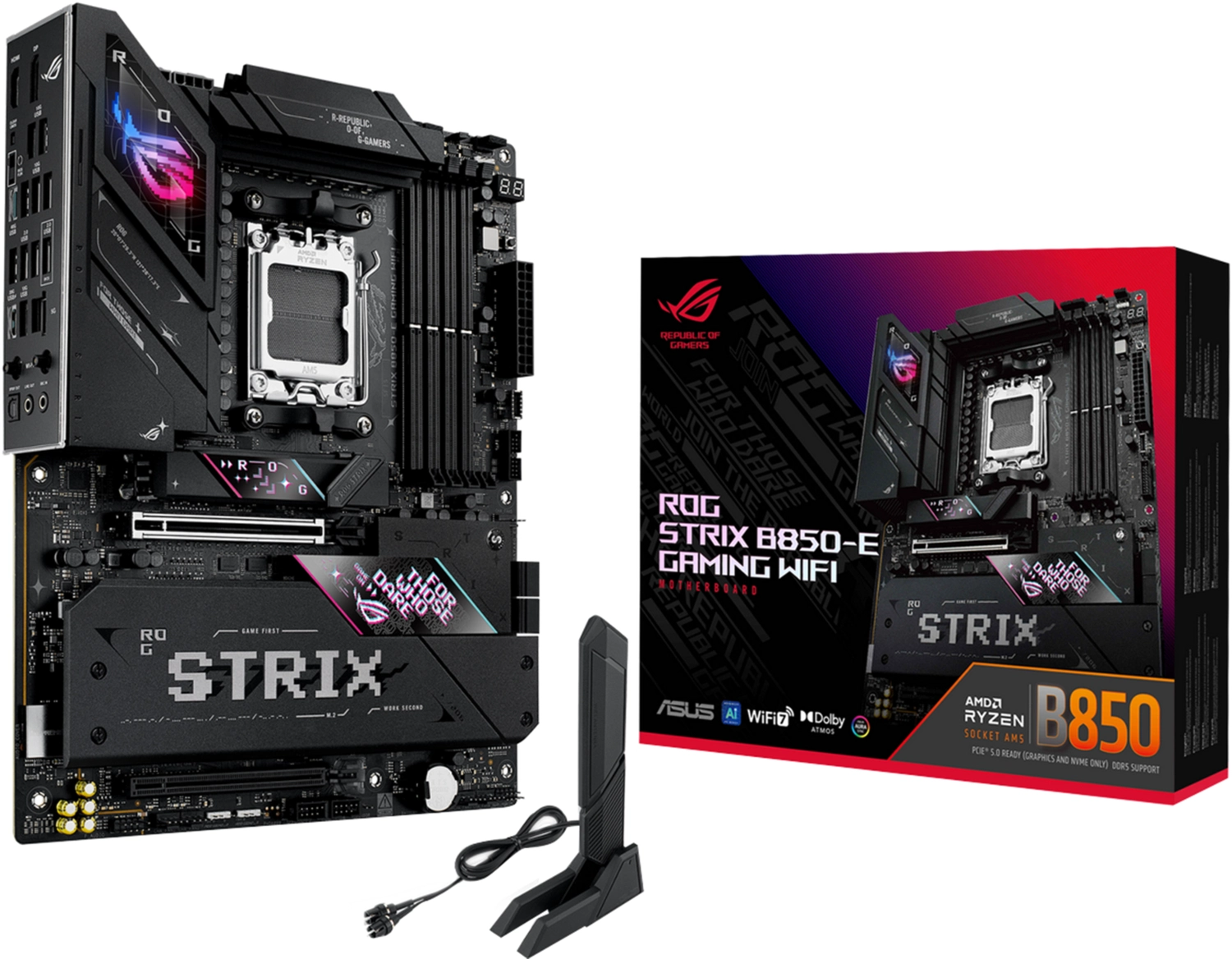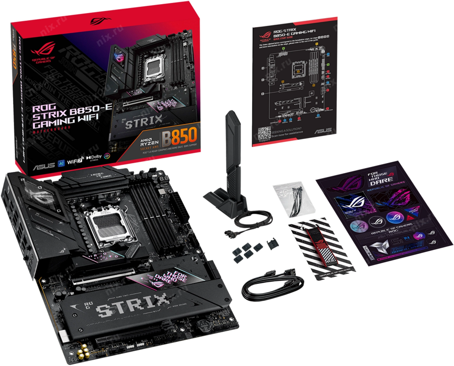 Материнская плата ASUS ROG STRIX B850-E GAMING WIFI (Socket AM5, ATX, 4xDDR5(256GB), DP/HDMI/USB4, 1xPCIe 5.0x16/1xPCIe 4.0x16, 1xLAN (5GbE), Wi-Fi 7, BT, 4xSATA 6Gb/s, 5xM.2, 2xType-C, 6xUSB 3.2, 4xUSB 2.0) [ROGSTRIXB850-EGAMINGWIFI]