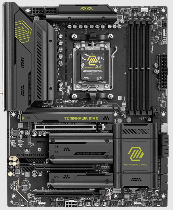 Материнская плата MSI MAG B850 TOMAHAWK MAX WIFI B850, AM5, 4*DDR5, 3*PCIEx16, 4*M.2, 4*TypeC, 2*USB3.2Gen2, 5*USB3.2Gen1, 8*USB2.0, 4*SATA3.0, 5G, HDMI, ATX, RTL