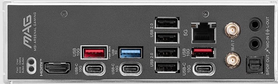 2x USB 3.1 Gen2, 3x USB 3.1 Gen2 Type C, 1x USB 3.0 (USB 3.1 Gen1), 4x USB 2.0