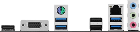 VGA, HDMI, 3 x Audio jacks, PS/2 Keyboard/Mouse combo port