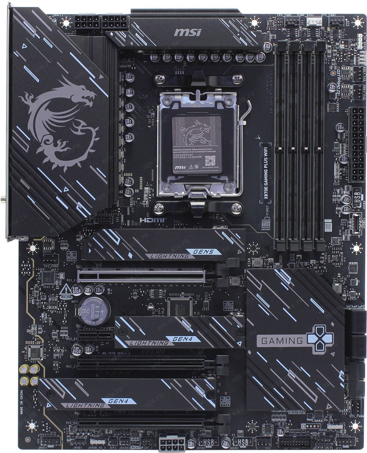 Материнская плата MSI X870E GAMING PLUS WIFI X870E, AM5, 4*DDR5, 3*PCIEx16, 1*PCIEx1, 3*M.2, 2*TypeC, 2*USB3.2Gen2, 6*USB3.2Gen1, 10*USB2.0, 4*SATA3.0, 5G, 1*Type-C(DP), HDMI, ATX, RTL