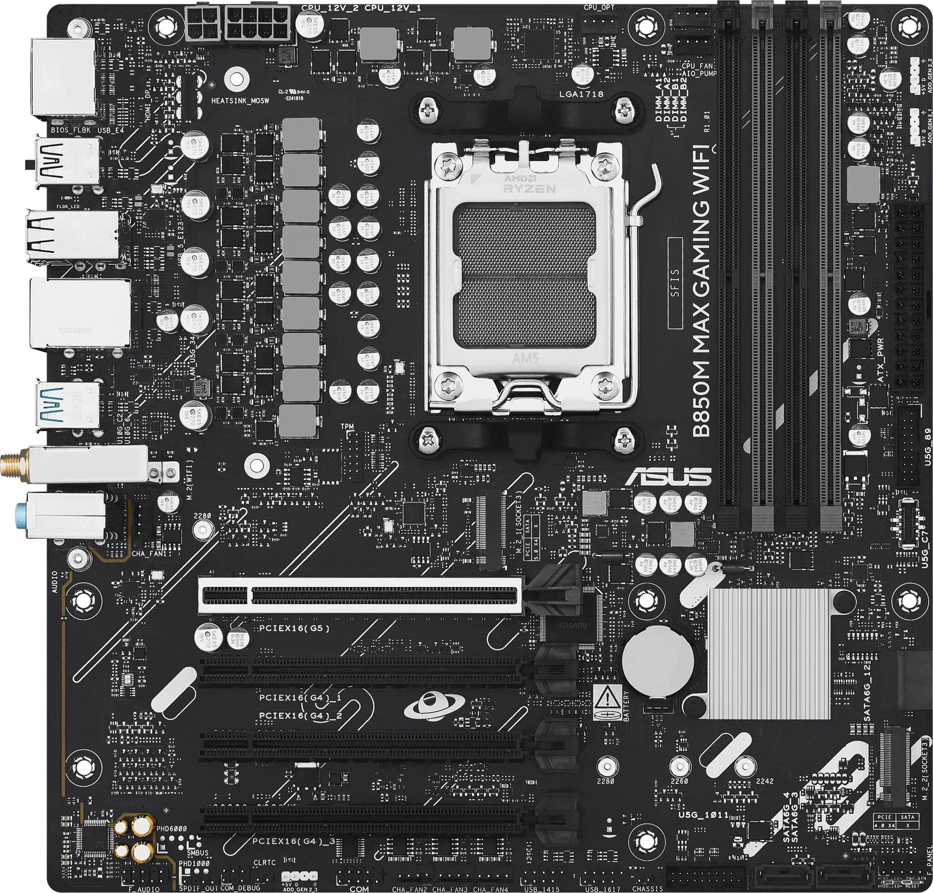 Материнская плата ASUS B850M MAX GAMING WIFI AM5 mATX 4xDDR5 4xPCIEx16 3xM.2 USB-C DP HDMI GLAN Wi-Fi 6 90MB1LL0-M0EAY0