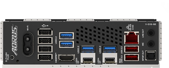 2 x USB4 Type C, 2x USB 3.1 Gen2, 4x USB 3.0 (USB 3.1 Gen1), 4x USB 2.0