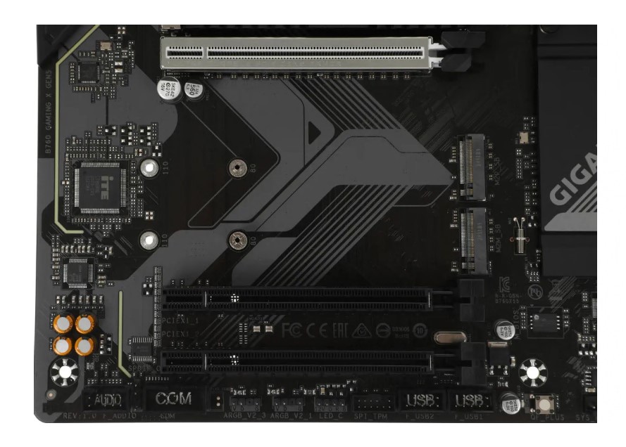 3 слота 16x PCI-E работают в режиме 16-1-1; Первый слот работает как PCI-E 5.0; Второй слот работает как PCI-E 3.0; Третий слот работает как PCI-E 3.0