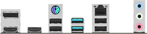 2x USB 3.2 Gen 2 Type-A, 4x USB 2.0 Type-A, 1 x DisplayPort, 2x HDMI, 1x LAN, 3x Audio jacks, 1x PS/2 Keyboard/Mouse combo port, 2 x USB 3.2 Gen 1 headers support 4 additional USB 3.2 Gen 1, 1x USB 3.2 Gen 1 connector (поддержка USB Type-C), 2x USB 2.0,1x USB 2.0