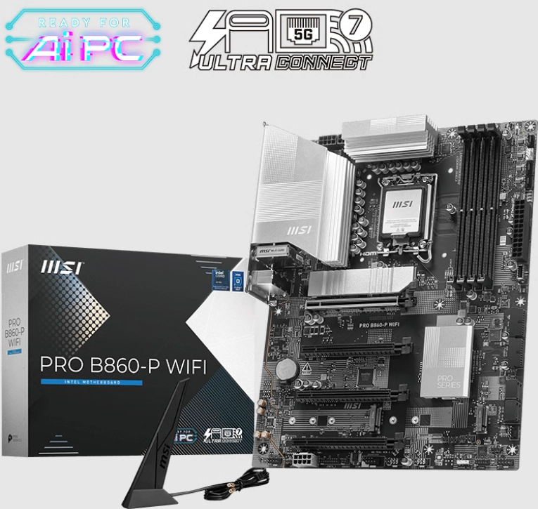 Материнская плата MSI PRO B860-P WIFI Soc-1851 Intel B860 4xDDR5 ATX AC`97 8ch(7.1) 5Gigabit RAID+HDMI+DP