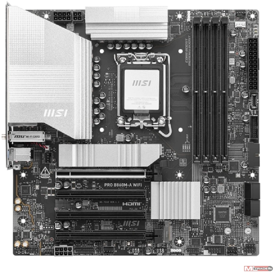 Материнская плата MSI PRO B860M-A WIFI Soc-1851 Intel B860 4xDDR5 mATX AC`97 8ch(7.1) 5Gigabit RAID+HDMI+DP