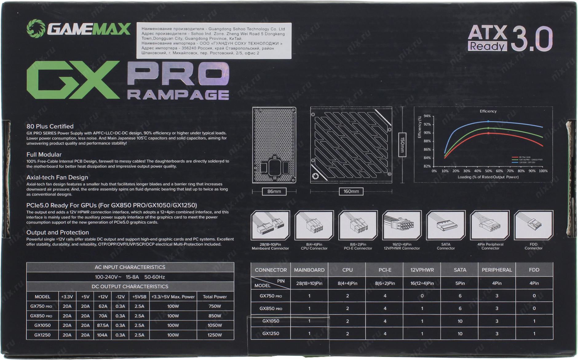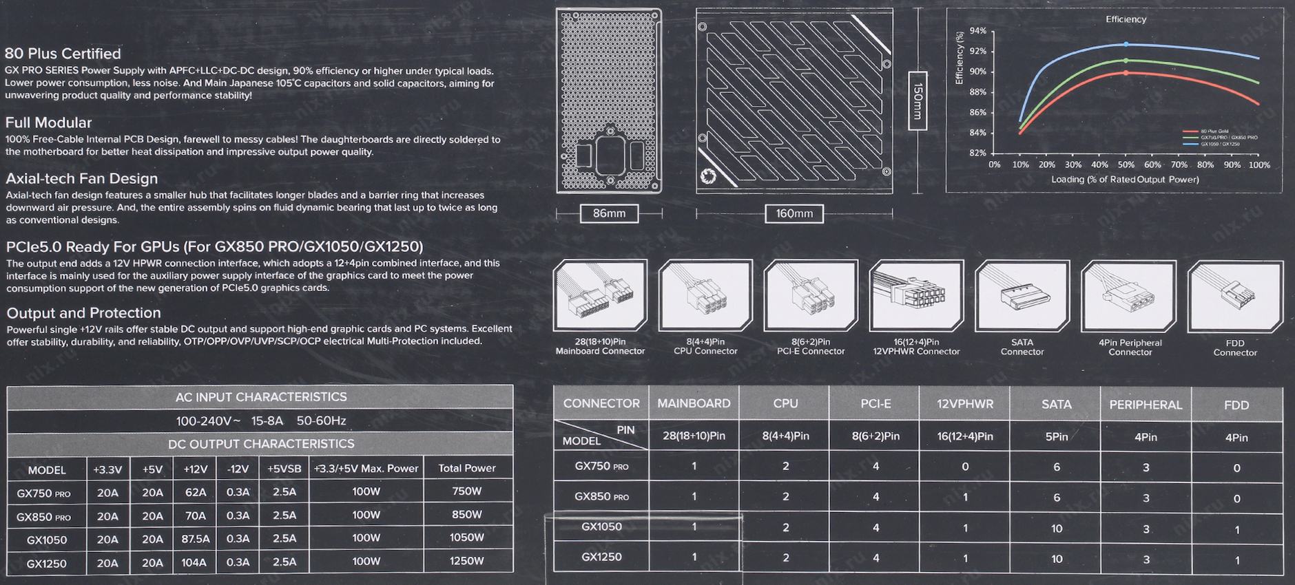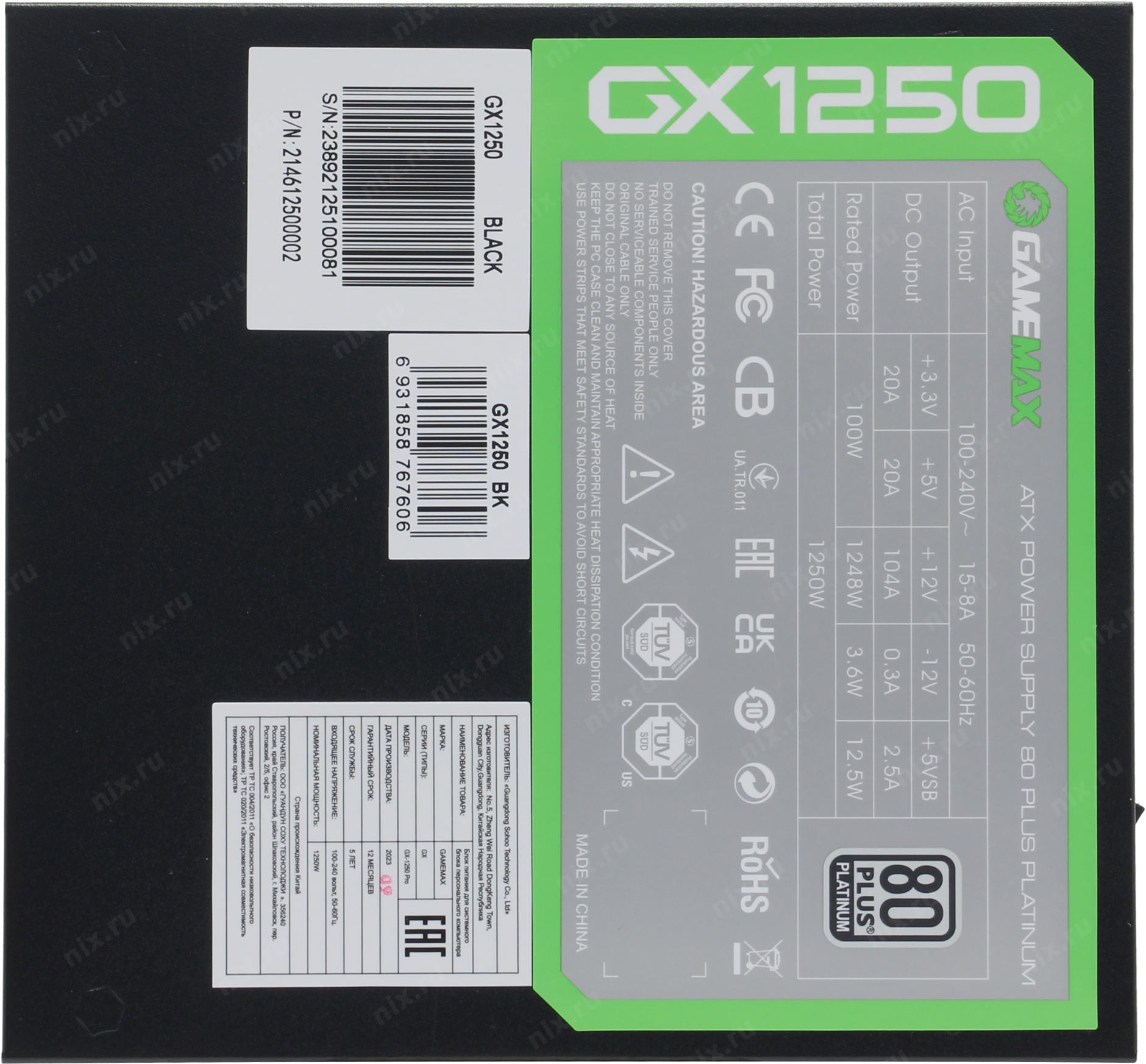 GX-1250 Black> 1250W ATX (24+4x4+16+4x6/