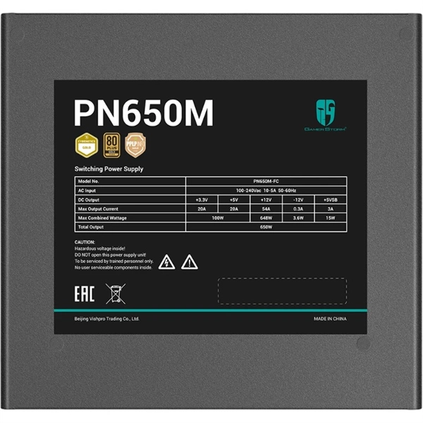 Блок питания Deepcool GAMERSTORM PN650M (ATX 3.1, 650W, Full Cable Management, PWM 120mm fan, Active PFC, 80+ GOLD, Active PFC + Full Bridge SRC LLC + DC/DC, Gen5 PCIe) RET [R-PN650M-FC0B-EU]