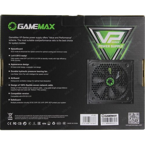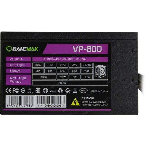 Блок питания Formula V Line VX PLUS 800, 800W, ATX12V v2.3, 12cm Fan (ex Aerocool)