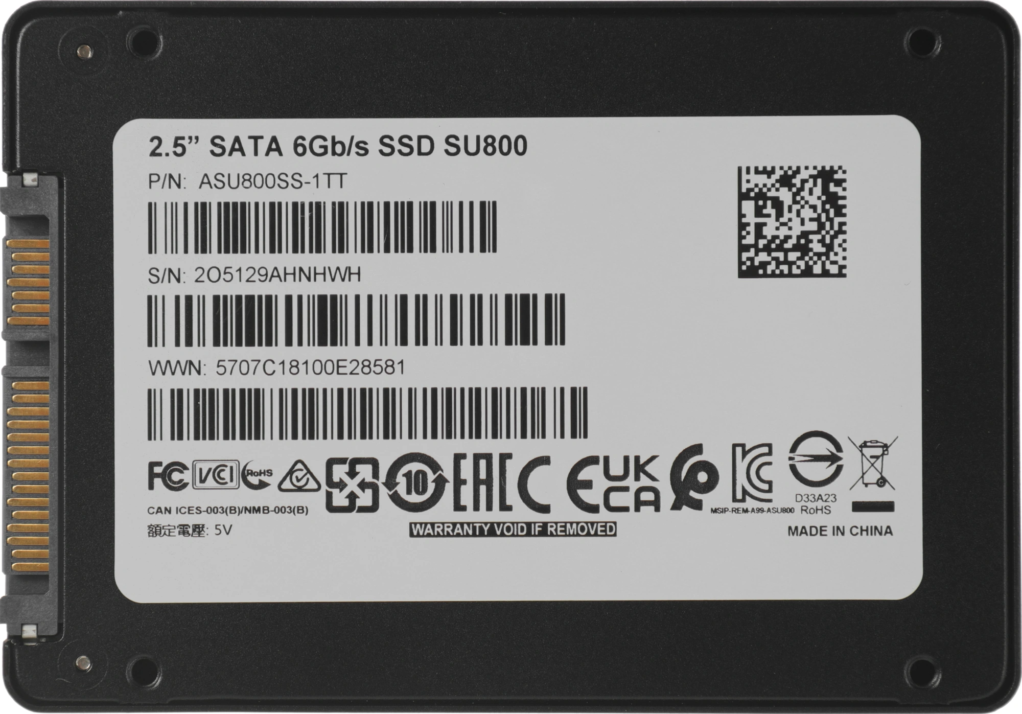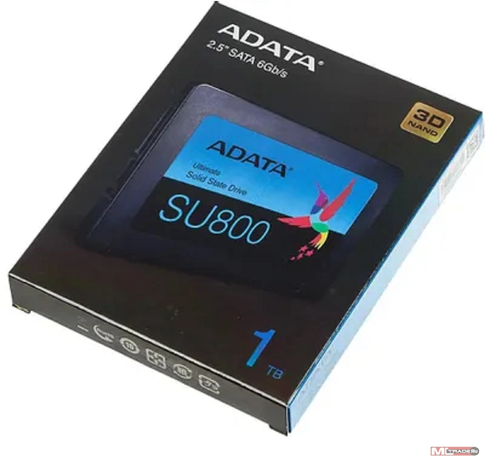 Твердотельный накопитель SSD ADATA Ultimate SU800 ASU800SS-1TT-C 1TB 2.5" Client SATA 6Gb/s,560/520, IOPS 80/80K, MTBF2M, 3D V-NAND TLC,1024MB, 800TBW, Adapter 2.5" (7mm to 9.5mm), Retail (967274)