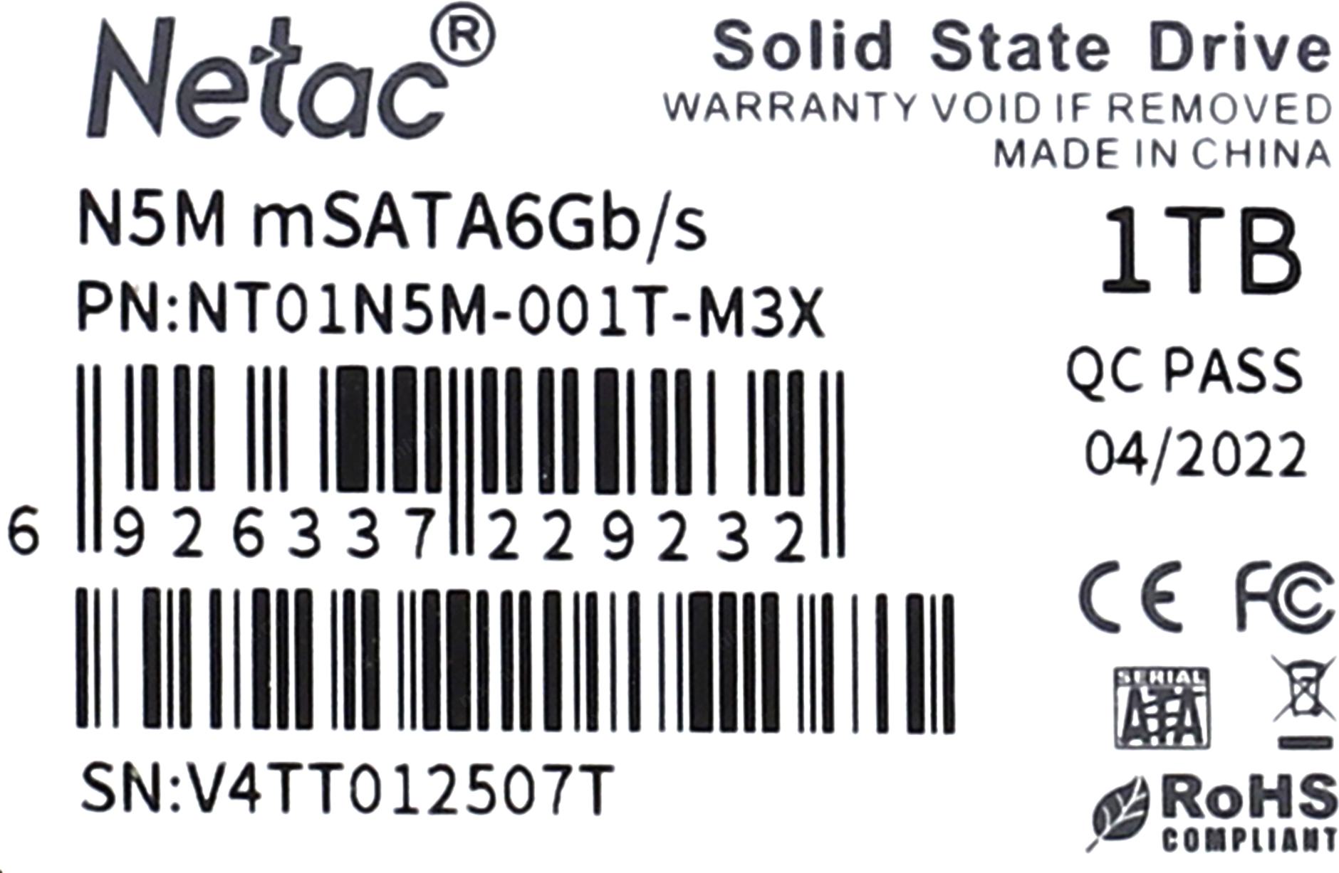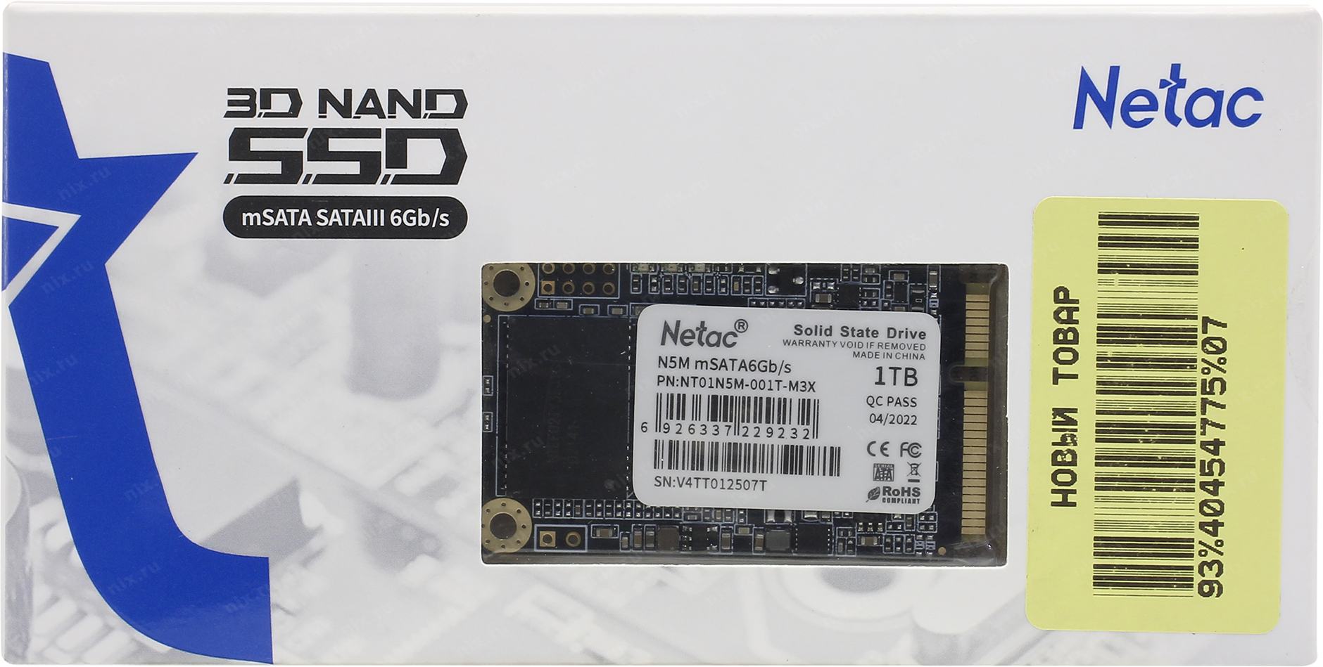 SSD накопитель Netac SSD N5M 1TB mSATA SATAIII 3D NAND, R/W up to 560/520MB/s, TBW 560TB <NT01N5M-001T-M3X>