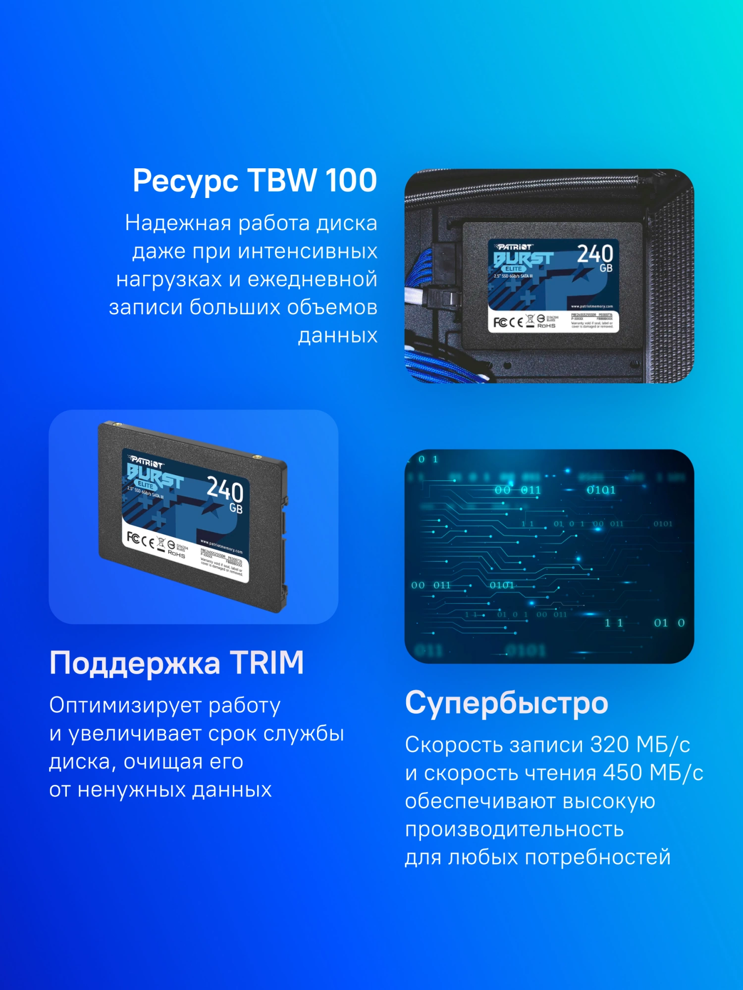 Накопитель SSD SATA 2.5" 240GB BURST E PBE240GS25SSDR PATRIOT