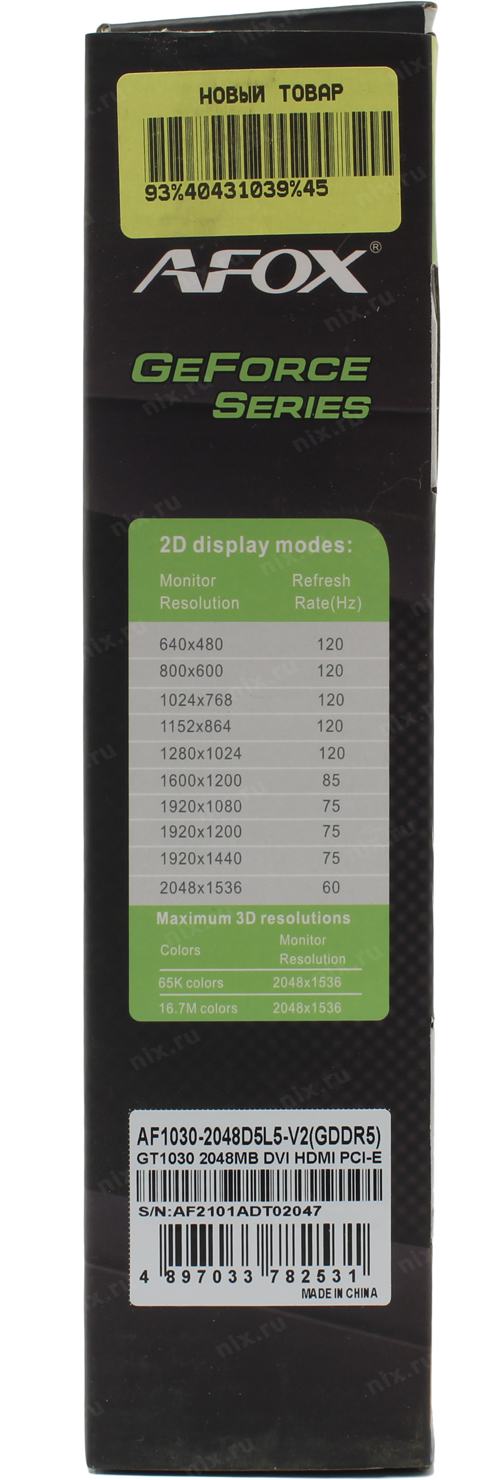 Видеокарта Afox GT1030 2GB GDDR5 64bit DVI HDMI 1FAN LP RTL (30) (782531) (GT 1030) AF1030-2048D5L5-V2