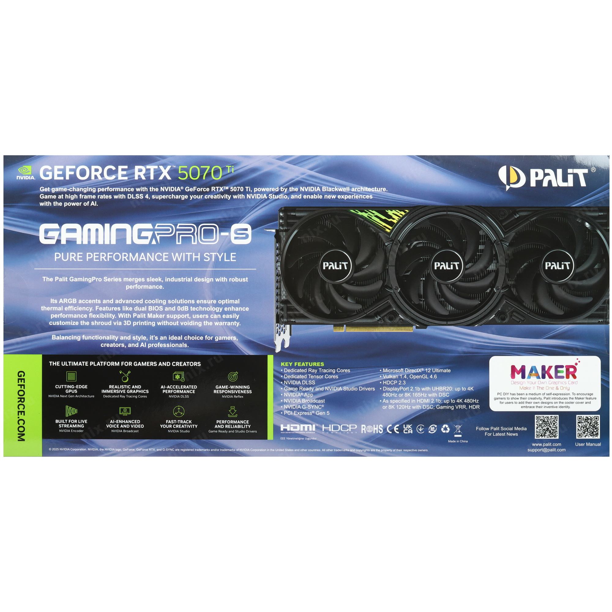 Видеокарта Palit RTX5070Ti GAMINGPRO-S OC 16GB GDDR7 256bit 3xDP HDMI 3FAN RTL (NE7507TS19T2-GB2031U)