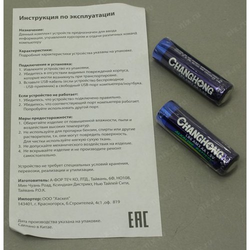 2 батарейки типа AA, USB-приемник, USB-удлинитель